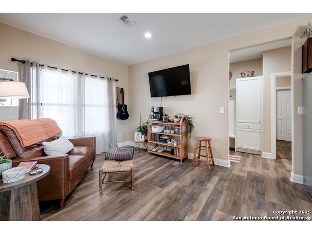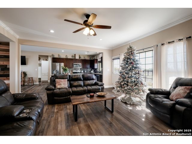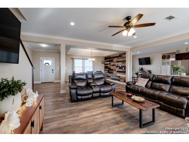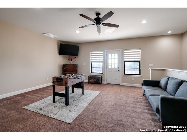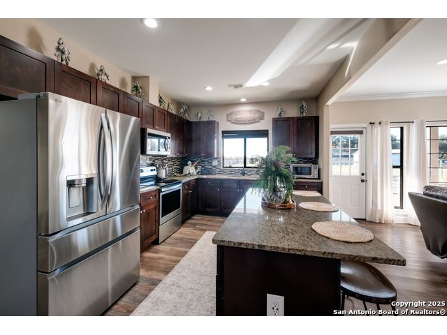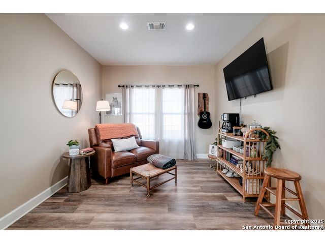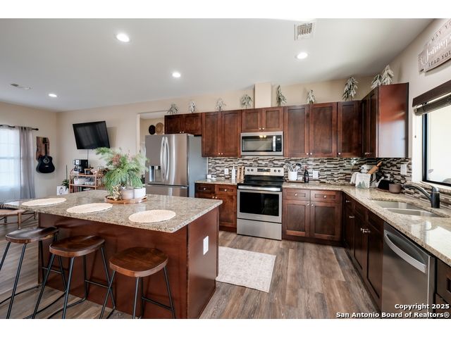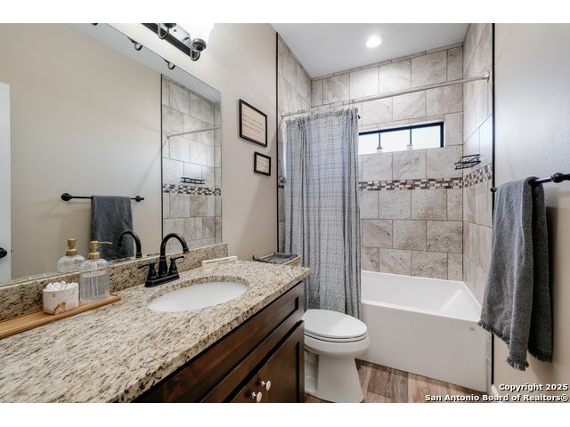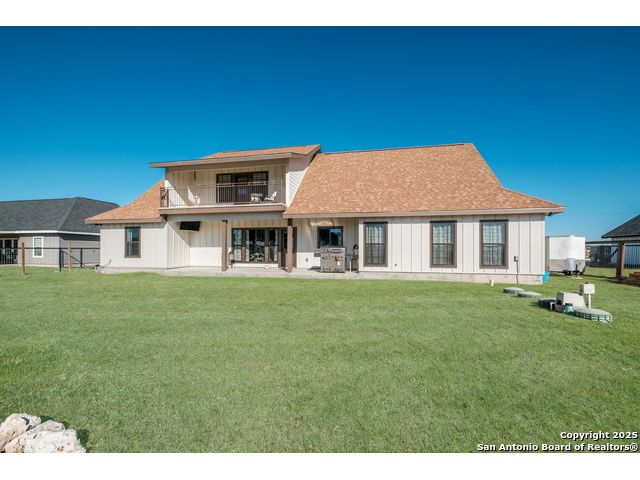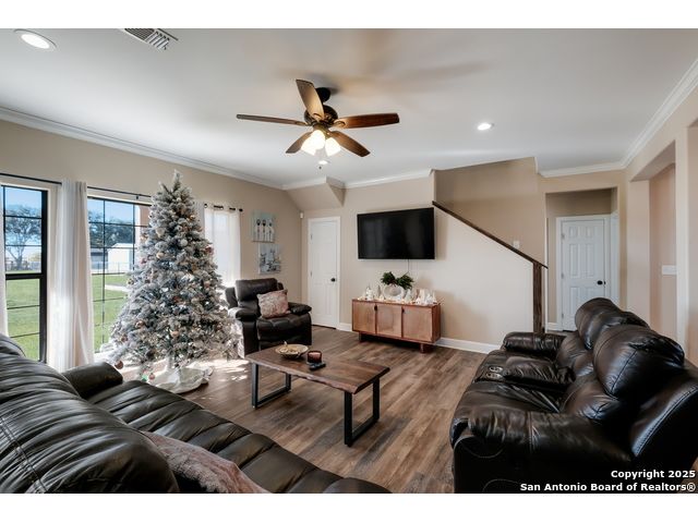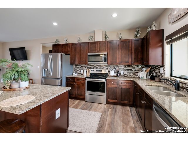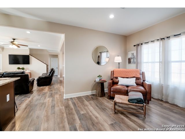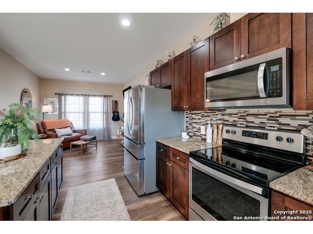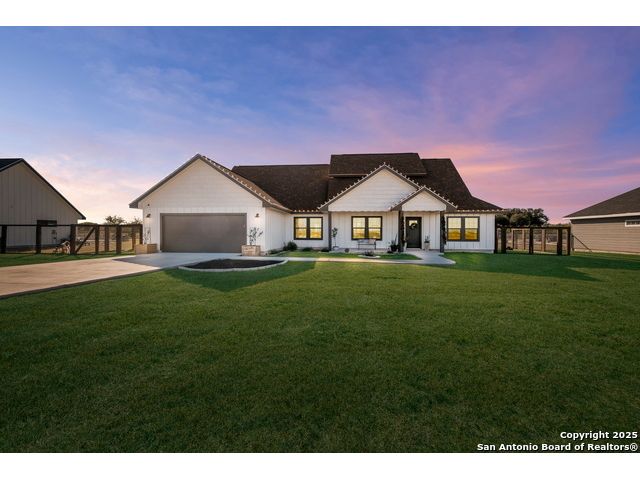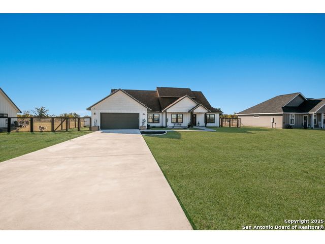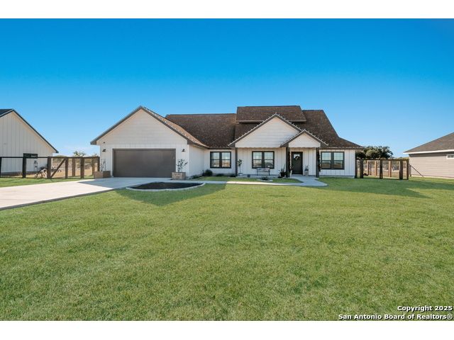 This 3-bedroom, 2-bathroom home features an open living layout and is located within Navarro ISD attendance boundaries. Interior features include custom cabinetry, granite countertops, high ceilings, and foam insulation. The home also offers an engineered slab foundation, a finished garage, and a bonus room with a balcony. The property sits on approximately 0.75 acres, providing outdoor space for a range of uses. The main living and kitchen areas are located downstairs with a secondary living area upstairs. Location offers access to Seguin services and major roadways. All measurements, taxes, schools, utility information, and appliance sizes should be independently verified by the buyer.
