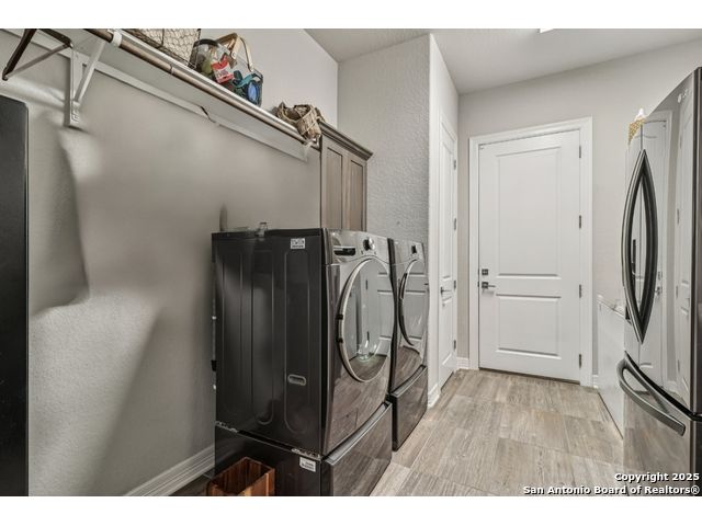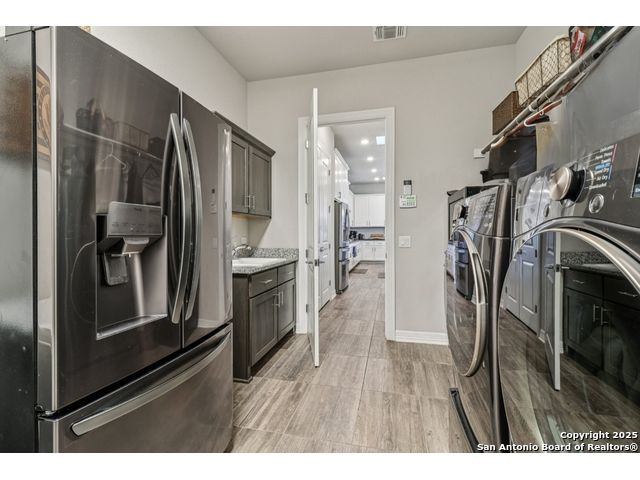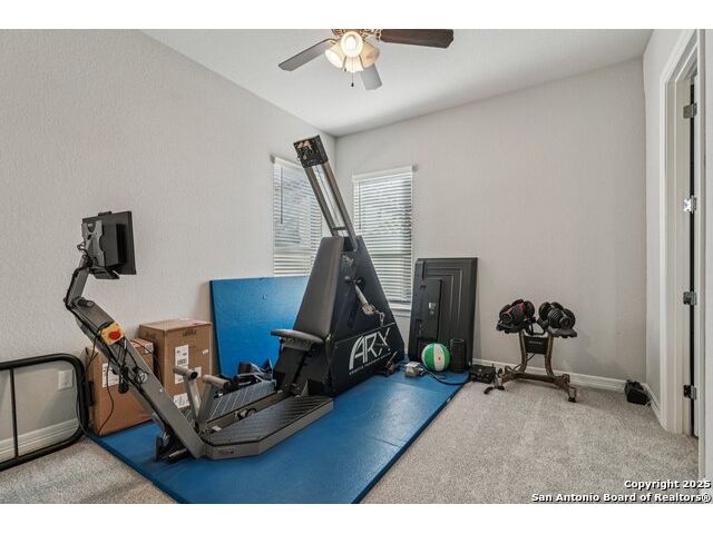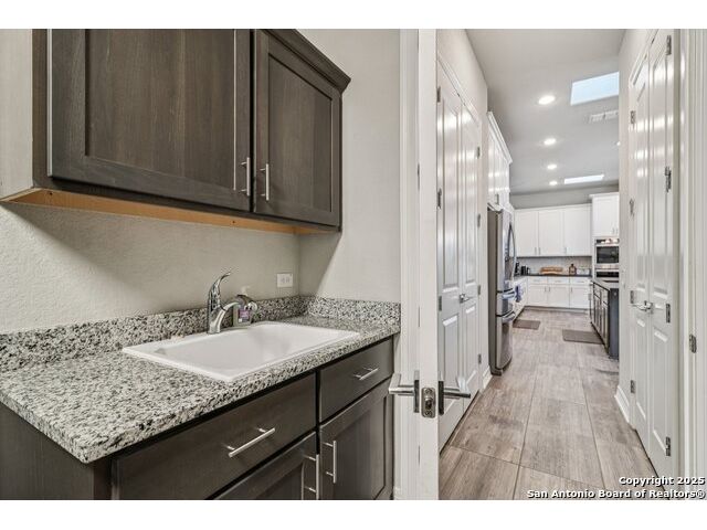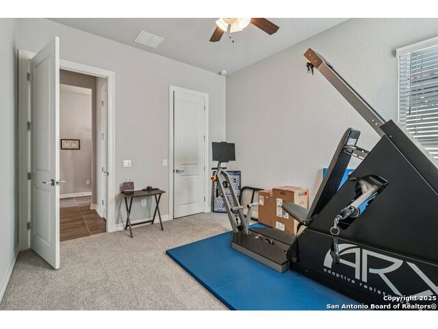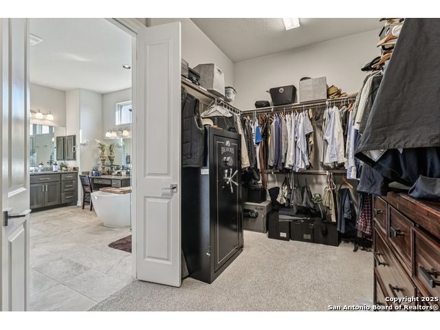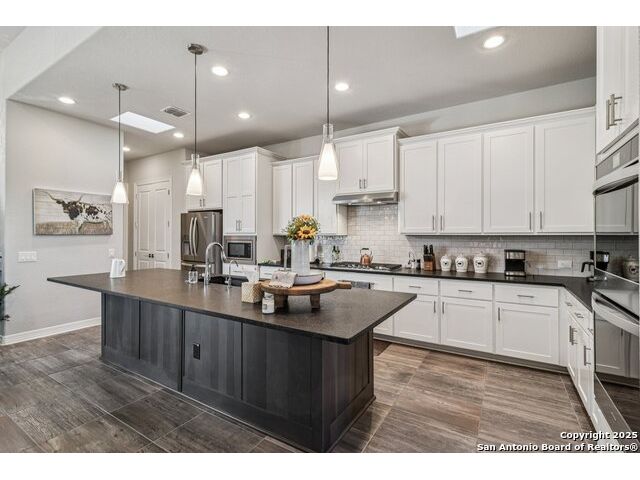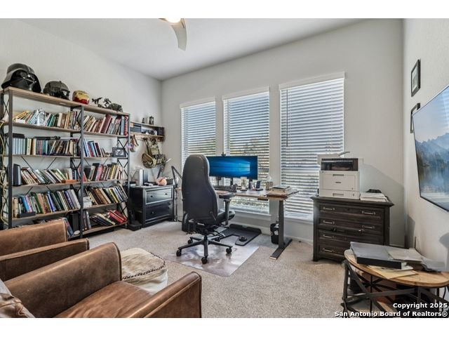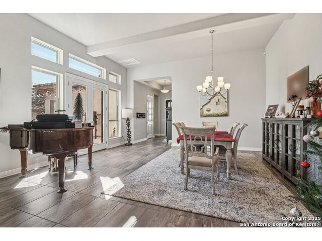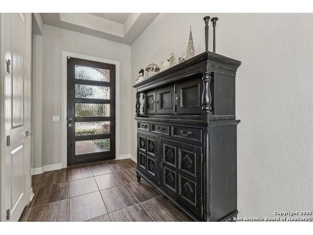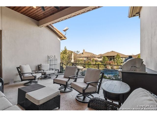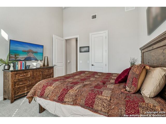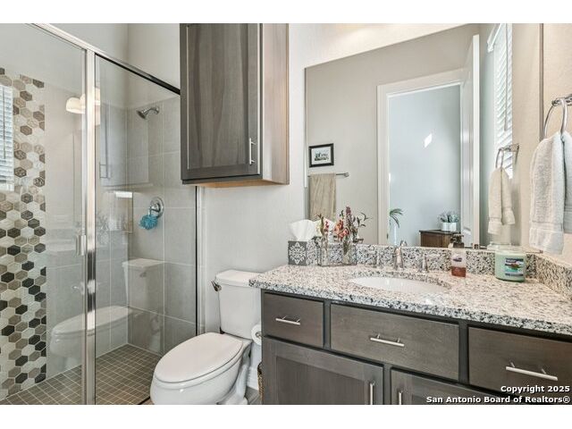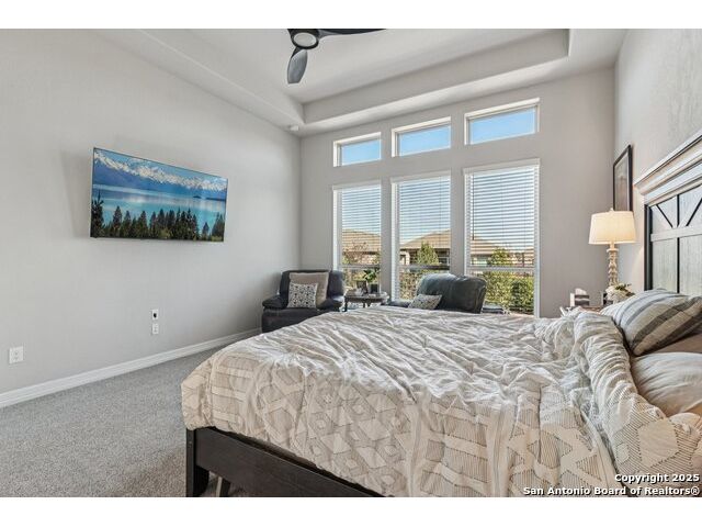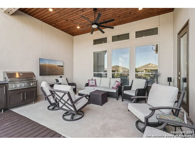 Single-story Sitterle garden home located in the gated Campanas at Cibolo Canyons community. This open-concept residence includes 3 bedrooms, 3.5 bathrooms, and a private study, designed for efficient single-level living. The kitchen features granite countertops, gas cooking, double ovens, and ample cabinet storage. The primary suite offers a spa-style bathroom with a separate shower, a garden tub, and dual vanities. Living areas include abundant windows for natural light and a gas fireplace. Outdoor living spaces include a patio, courtyard, and a covered patio overlooking an in-ground heated pool and spa. Community amenities include a clubhouse, fitness center, and three community pools, with convenient proximity to shopping, dining, and golf.