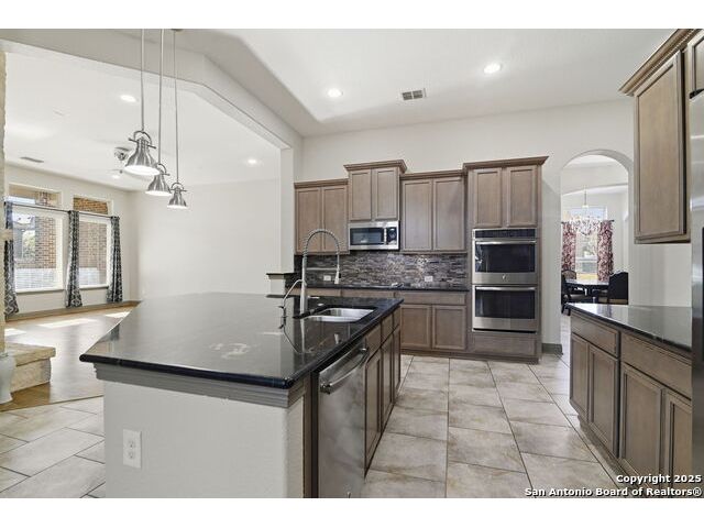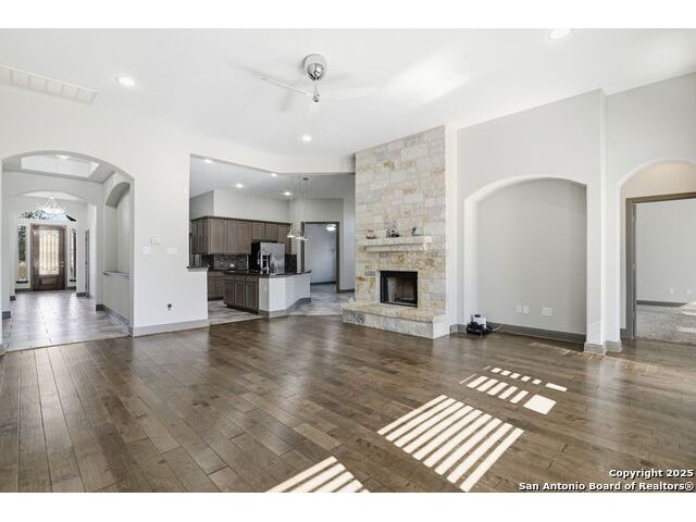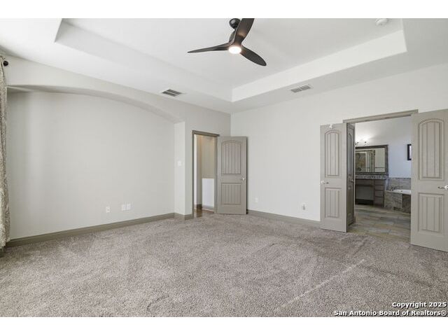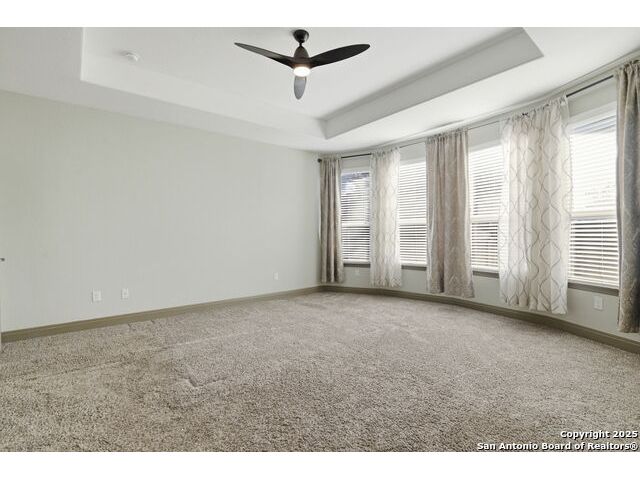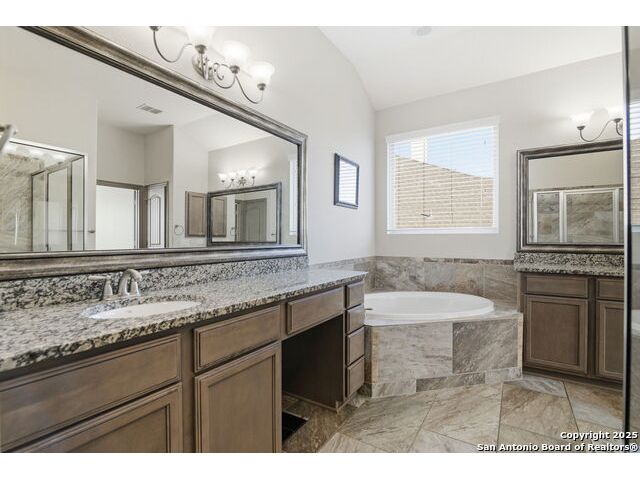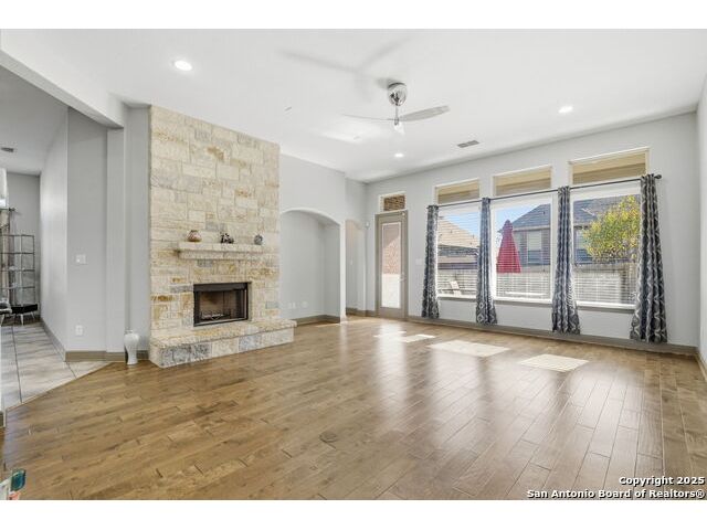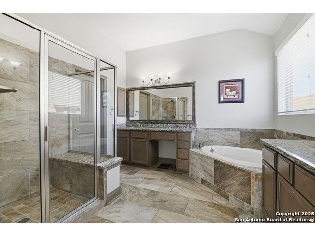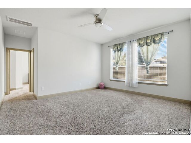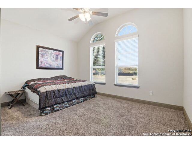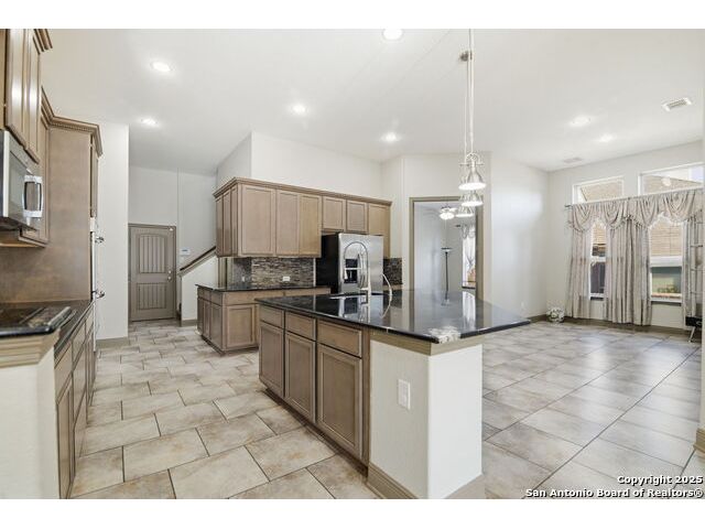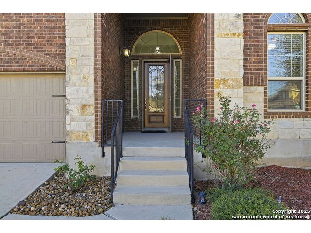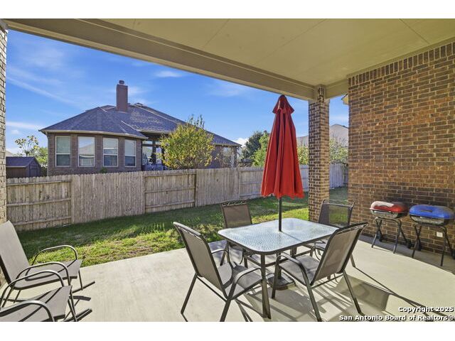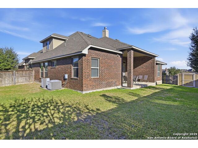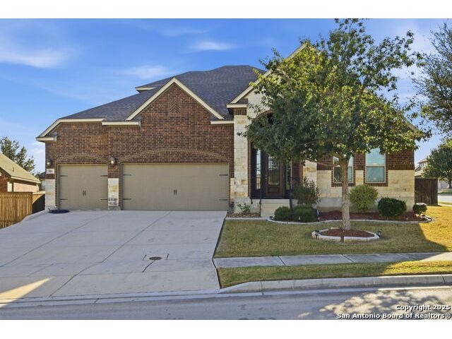 Welcome to this spacious 5-bedroom, 4-bath home on a 0.229-acre corner lot within a gated community in Cibolo. Offering a 3-car garage, this four-side masonry home features tray ceilings, a welcoming front porch, and a covered patio perfect for outdoor enjoyment. The thoughtfully designed layout includes a private study, formal dining room, breakfast area, and a dedicated children's retreat-providing flexible spaces for work, play, and entertaining. The primary suite features a bay window, dual vanities, a soaking tub, and a separate walk-in shower with bench. Additional highlights include a cozy living room fireplace, automatic sprinkler system, storage shed, and a spacious 3-car garage. Conveniently located near Randolph Air Force Base, major highways, shopping, and dining-this home offers exceptional space, comfort, well-located setting.