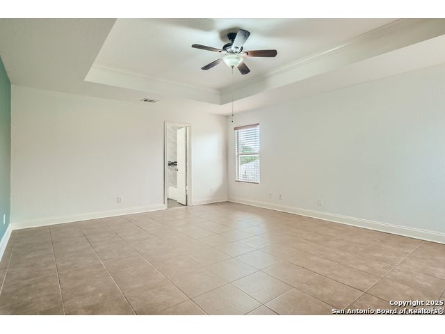 Step inside and be greeted by the inviting main floor, adorned with elegant vinyl flooring throughout. The separate dining room offers the perfect space for entertaining or everyday dinners. Prepare to be wowed by the beautiful kitchen that overlooks both the breakfast area and living room, creating an open and connected atmosphere. The kitchen features exquisite granite countertops, a convenient kitchen island, a stylish tiled backsplash, and top-of-the-line stainless steel appliances. Additionally, a walk-in pantry ensures ample storage space. On the main floor, you'll find a spacious bedroom and a full bathroom, providing versatility and convenience for guests or family members. Ascend the staircase to discover the upper level, adorned with luxurious tiled flooring. A second living room awaits, as well as the remaining bedrooms. The primary bedroom is a true sanctuary, complete with tray ceilings that add an extra touch of elegance. Step into the primary ensuite, where you'll find a double vanity, a soothing soaking tub, a walk-in shower, and a generously-sized walk-in closet. The backyard is fully fenced-in space that offers both a shed and a covered patio. Just down the block, you'll find the neighborhood park, providing endless opportunities for outdoor recreation and leisurely strolls. Don't miss your chance to call this incredible 4 bedroom, 3 bathroom home your own.