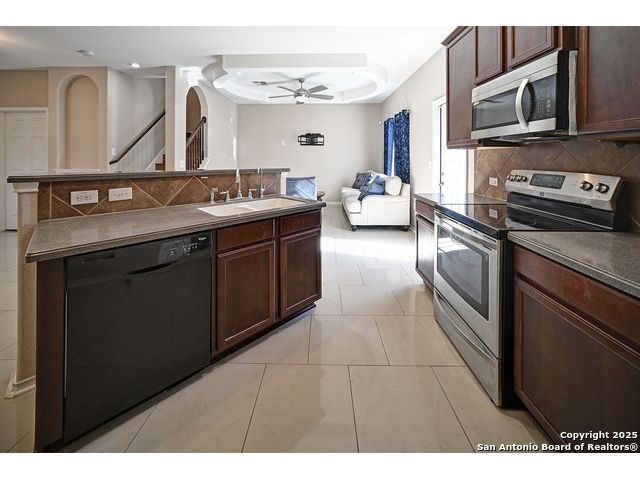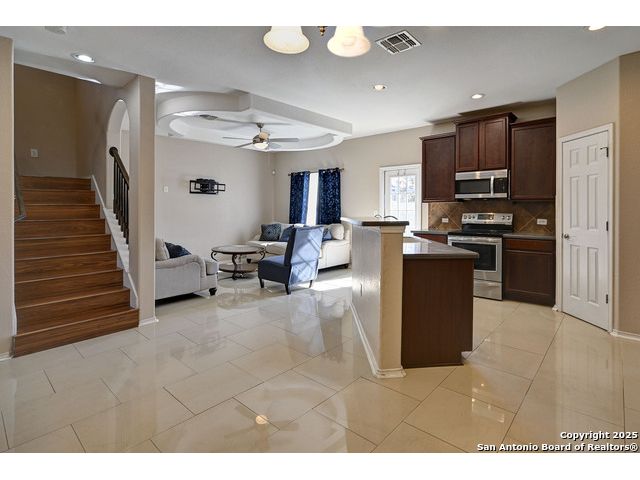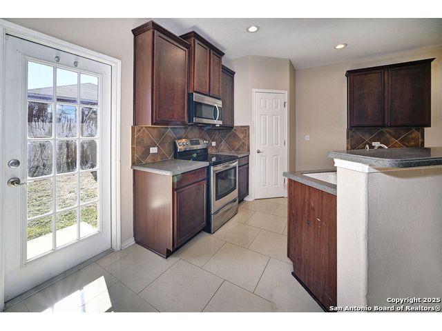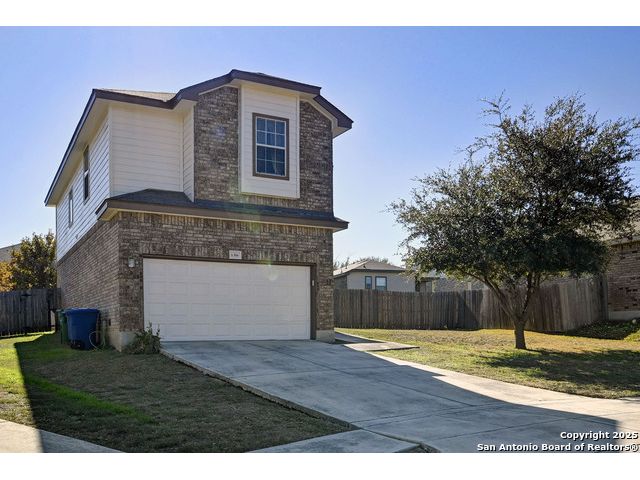 Welcome to your perfect starter home in the Ridgestone subdivision! This beautifully maintained two-story home features fresh new paint and flooring, creating a modern and inviting atmosphere. The open floor plan is ideal for entertaining, with a spacious living/dining combo and a large kitchen boasting an island, stylish backsplash, and ample cabinet space. Upstairs, you'll find all bedrooms, including a generous primary suite with a walk-in closet and full bath. Plenty of natural light throughout the home. Enjoy outdoor living in the fenced backyard, perfect for gatherings or relaxation. Located on a quiet cul-de-sac. Conveniently located near 410 and Lackland AFB, with shopping, dining, and entertainment nearby. WELCOME HOME!