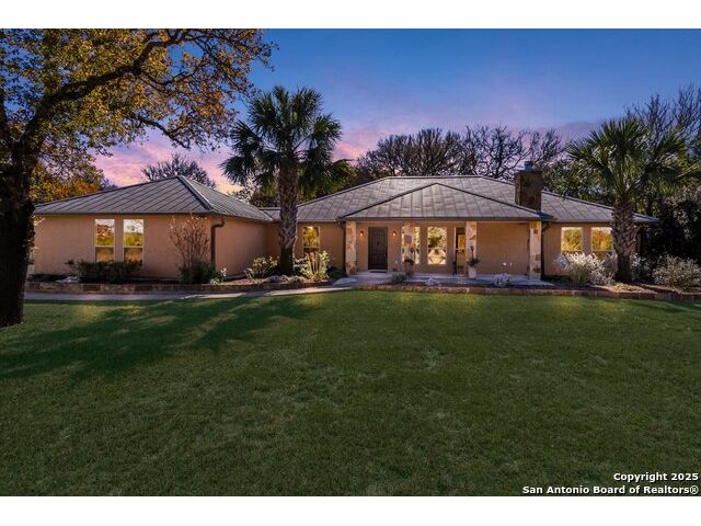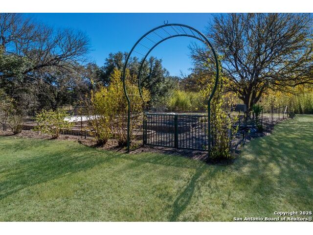 Discover your private oasis on five sprawling acres in the prestigious River Mountain Ranch community. This custom-built home seamlessly blends luxury living with outdoor adventure, creating the perfect retreat for those who appreciate quality craftsmanship and natural beauty. Inside, soaring vaulted ceilings with exposed wood beams create an impressive sense of space, while stained and scored concrete floors provide both durability and style. The heart of the home features a huge center island with a gas cooktop, complemented by Kenmore Elite appliances including dual ovens. A striking stone fireplace anchors the living area, offering both electric convenience and wood-burning capability for cozy evenings. The three bedrooms include a well-appointed primary bedroom, with two full bathrooms serving the home. Thoughtful details like ceiling fans with remote controls and a standing seam metal roof demonstrate the quality construction throughout. Your outdoor paradise awaits with an impressive fiberglass pool measuring approximately sixteen by forty feet, featuring depths from three to seven feet and surrounded by beautiful Oklahoma stone decking. The outdoor kitchen rivals any indoor setup with granite countertops, built-in barbecue grill, dual-burner cooktop, outdoor fireplace, and even a wood-fired pizza oven. Garden enthusiasts will appreciate the twenty-four by sixty-foot greenhouse with propane heating and circulation systems, complemented by a comprehensive rain catchment system featuring multiple storage tanks strategically placed throughout the property. The water storage infrastructure includes three 2,500-gallon tanks in the front yard, one 2,500-gallon tank by the garage, and two 1,500-gallon tanks by the greenhouse. Additionally, a spacious twenty-five by thirty-foot area provides excellent storage for recreational vehicles. An eight-foot perimeter fence enhances the privacy and security of the entire five-acre property, while an electric gate provides both convenient access and an additional layer of security for this luxury estate, creating a truly secluded environment for your outdoor amenities and activities. Mature landscaping includes live oaks, Monterey oaks, and diverse native plantings that enhance the property's natural charm. Located near the Guadalupe River with river access for tubing and kayaking, this exceptional property offers both privacy and convenience to Boerne amenities.