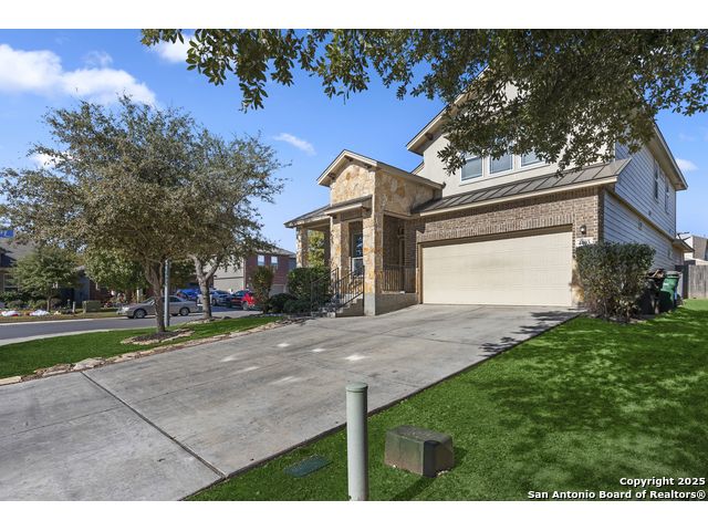 Welcome to 4403 Harrisburg, a beautifully refreshed home located in the highly sought-after East Central Independent School District, offering space, style, and versatility throughout. This home features spacious bedrooms with walk-in closets, ceiling fans throughout the home, modern electric fireplace, two jack and jill restrooms upstairs, two separate living areas-one downstairs and one upstairs-and no carpet throughout, showcasing durable LVP and tile flooring. The primary suite is a true retreat with a huge jacuzzi jet tub and separate shower, while fresh new interior paint gives the home a clean, modern feel. Additional highlights include a water softener, a garage equipped with a full mirror wall and oversized propeller fan-perfect for a home gym, and a large 8x16 storage shed for extra storage. The stunning balcony staircase at the front entryway creates an impressive first impression, complemented by an open study or foyer ideal for working from home. Enjoy outdoor living with both a covered front patio and covered backyard patio, all situated on a corner lot with ample parking space, making it perfect for entertaining and hosting gatherings.