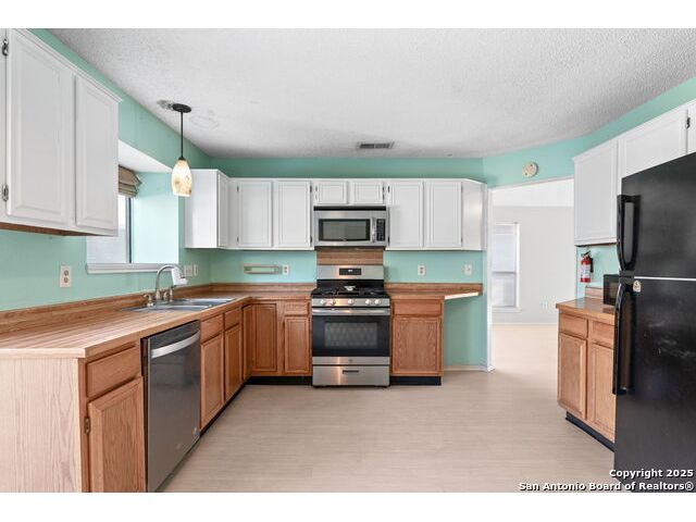Great opportunity in Hunters Chase! This three-bedroom, two-and-a-half-bath two-story home offers a functional layout with all bedrooms upstairs and newly installed luxury vinyl plank flooring on the main level. The open living, dining, and kitchen areas flow easily to the backyard, ideal for everyday living. Enjoy a spacious backyard with a new wood deck and room to create your own outdoor space. Community amenities include a pool, park, and sports courts. Conveniently located in Northside ISD and close to UTSA, USAA, the Medical Center, La Cantera, and The Rim, with easy access to Loop 1604 and I-10. Ideal for first-time buyers and investors.