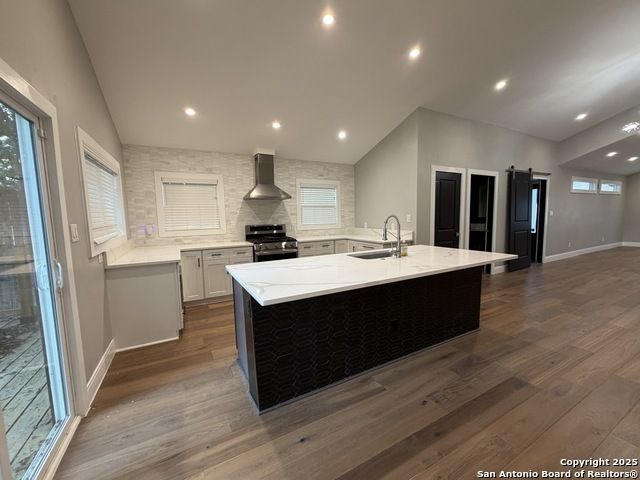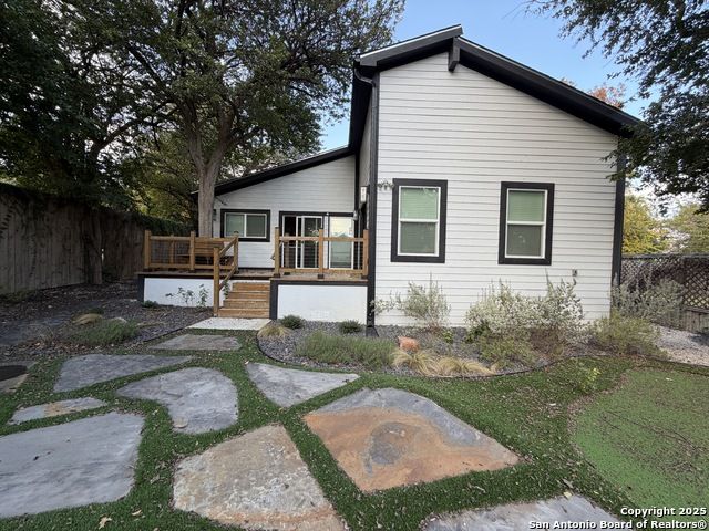 Darling home with 3 bedrooms and 2 baths. Open floor plan concept, large kitchen with island and gas cooking, abundant cabinets, stainless appliances and solid countertops. Primary bedroom located at back of home and split from secondary bedrooms. Primary bath features an oversized modern shower and double vanity with lighted mirrors. Secondary bedroom with jack-n-jill bathroom. Lovely backyard with large flagstone accents and wood deck.