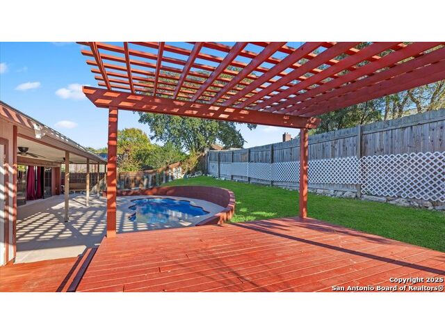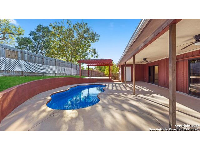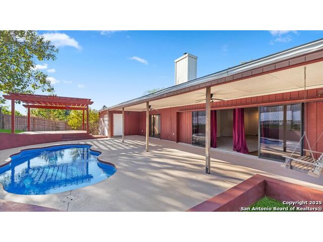 WELCOME TO THIS STUNNING HOME LOCATED IN THE HEART OF CIBOLO, OFFERING 4 SPACIOUS BEDROOMS AND 2 BEAUTIFULLY APPOINTED BATHROOMS. THIS HOME FEATURES UPDATED TILE FLOORING THROUGHOUT AND AN OPEN, LIGHT-FILLED FLOOR PLAN DESIGNED FOR BOTH COMFORT AND ELEGANT ENTERTAINING. THE EAT-IN KITCHEN IS A TRUE HIGHLIGHT WITH GRANITE COUNTERTOPS AND A SEPARATE DINING NOOK, PROVIDING THE PERFECT SPACE FOR EVERYDAY MEALS OR GATHERINGS. STEP OUTSIDE TO YOUR PRIVATE BACKYARD OASIS FEATURING A COVERED PATIO WITH GAZEBO AND POOL-IDEAL FOR RELAXING, ENTERTAINING, AND ENJOYING TEXAS SUMMERS. ADDITIONAL FEATURES INCLUDE PLUMBING FOR A WATER SOFTENER, ADDING BOTH CONVENIENCE AND VALUE. THIS HOME IS A BEAUTIFUL BLEND OF STYLE, FUNCTION, AND COMFORT.