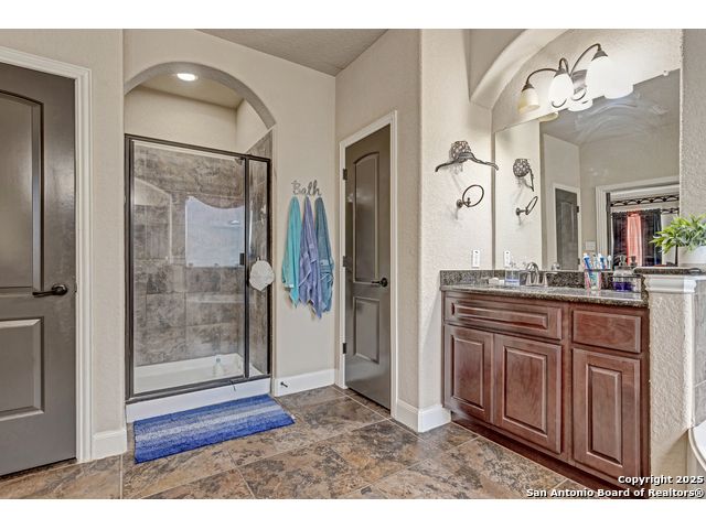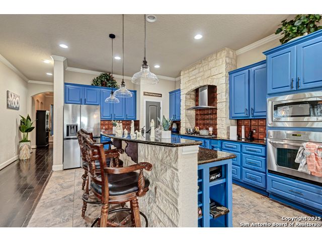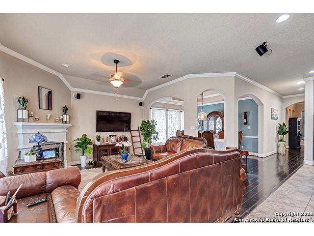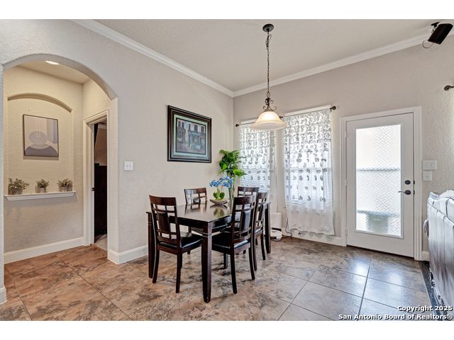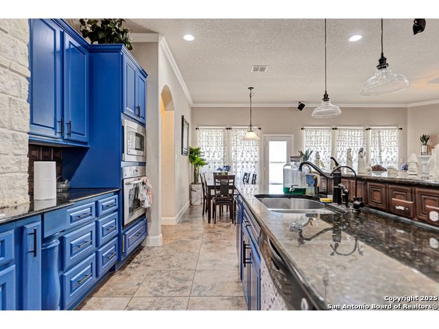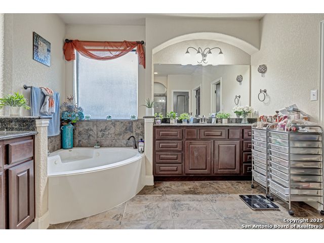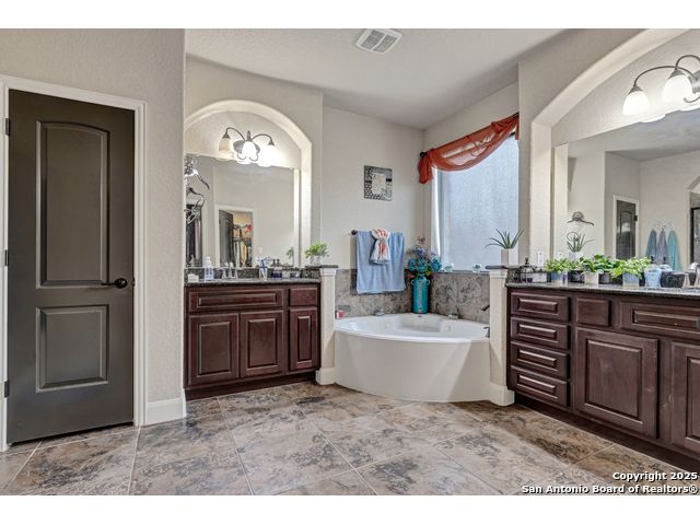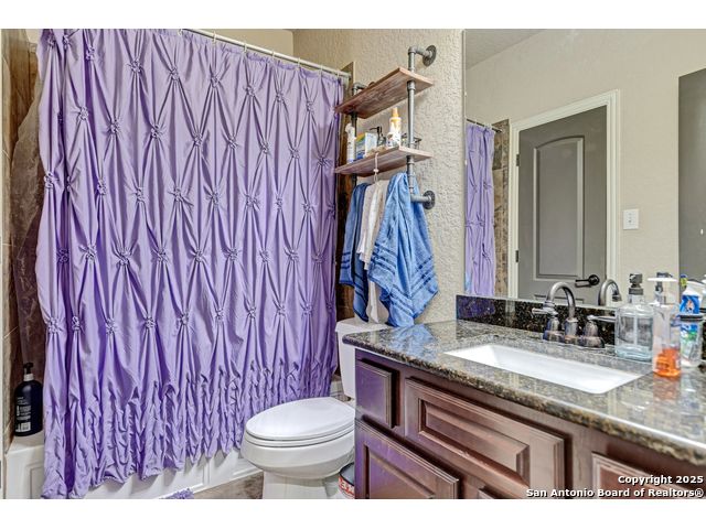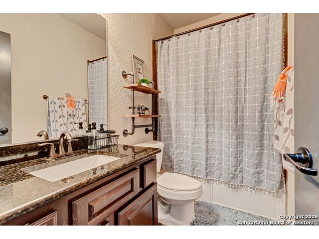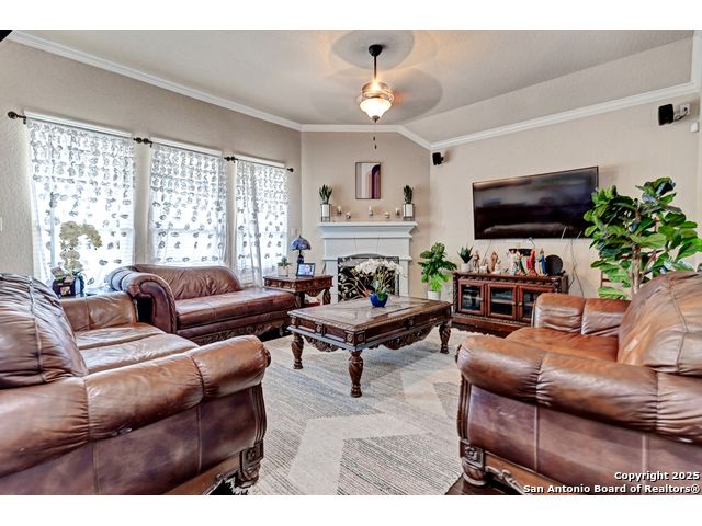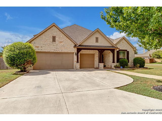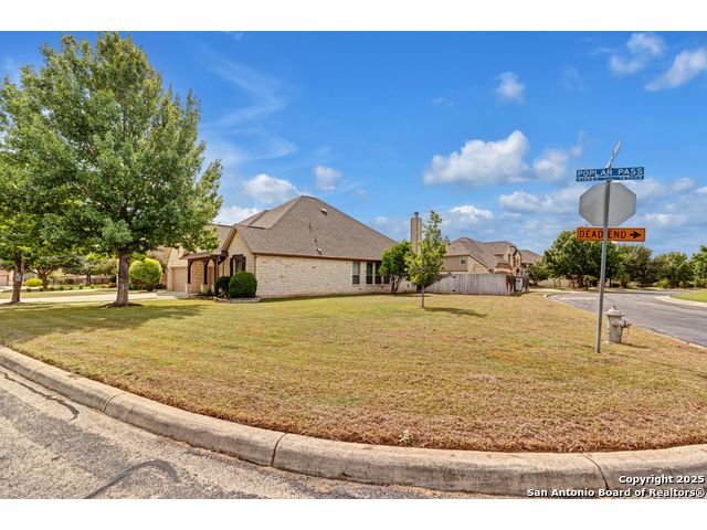COME AND SEE THIS BEAUTIFUL 4 BED + BONUS ROOM + 3-CAR GARAGE on Corner Lot house! Beautiful open-concept home with all main living spaces and bedrooms downstairs, plus an upstairs flex room with half bath-perfect as a 5th bedroom, game room, guest suite, private office, or anything you would like to create in there. The chef's kitchen features granite counters, large island with breakfast bar, gas cooktop, stainless steel appliances, and tons of storage, opening to a spacious living area with elegant corner fireplace-ideal for gatherings! Luxurious primary suite includes dual marble vanities, oval Jacuzzi tub, walk-in shower & large walk-in closet. A secondary bedroom with private bath is perfect for guests or in-laws; two additional bedrooms share a full bath between them. Enjoy a large backyard with a covered patio-plenty of room for outdoor fun! Prime location close to military bases, SeaWorld, shopping, dining & a short drive to downtown. A great house that combines space, comfort & convenience-don't miss this one!