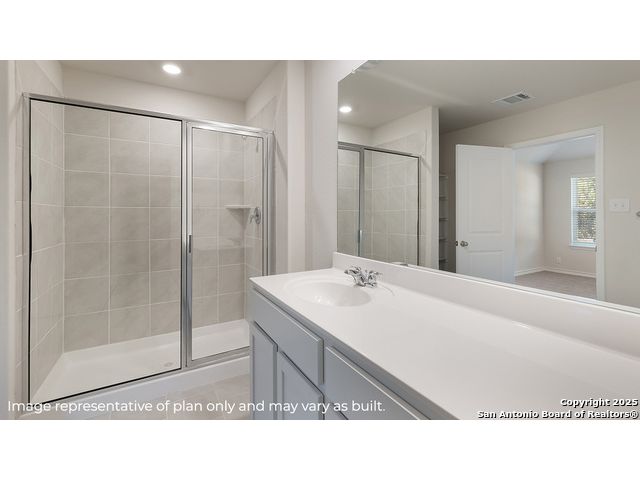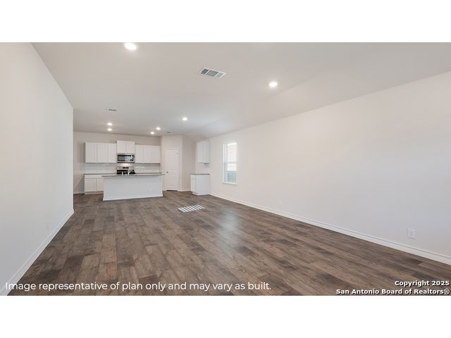 Modern design meets everyday livability in The Gaven floor plan located at The Birch at Spencer Ranch in thriving Boerne, TX! This spacious 1778 square foot, single-story home offers four bedrooms, two full bathrooms and a well-balanced layout perfect for a variety of lifestyles. From the moment you enter, a welcoming foyer sets the tone for the home's open and airy feel. The kitchen, dining area and living room are centrally located in an open-concept design, making it easy to entertain or enjoy everyday moments. The kitchen is both stylish and functional, showcasing stainless steel appliances, quartz countertops, flat panel cabinetry and a farmhouse-style sink. A spacious kitchen island and white subway tile backsplash add the finishing touches to this modern culinary space. The primary suite, tucked away at the rear of the home for privacy, offers a generous retreat complete with a tiled walk-in shower, dual vanity sinks and a walk-in closet. Your secondary bedrooms are thoughtfully designed to offer privacy and flexibility. Each room features quality carpet flooring, windows and ample closet space, making them ideal for children, guests or a home office. This home includes our HOME IS CONNECTED base package. Using one central hub that talks to all the devices in your home, you can control the lights, thermostat and locks, all from your cellular device. Enjoy outdoor living with a covered patio (per plan), full yard professional landscaping package and irrigation, ensuring that your home looks its best every single day. The Gaven floor plan offers thoughtful design, stylish finishes, and plenty of room to grow - right here in vibrant The Birch at Spencer Ranch.