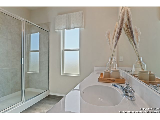 Love where you live in Blue Ridge Ranch in San Antonio, TX! The Chestnut floor plan is a charming 2-story home with 3 bedrooms, 2.5 bathrooms, and 2-car garage! The first floor offers the perfect entertainment space with a large kitchen island overlooking the family and dining rooms! The gourmet kitchen is sure to please with 42" cabinets, granite countertops, and stainless-steel appliances! The second floor offers a private retreat for all bedrooms! Retreat to the Owner's Suite featuring double sinks, a sizable shower, and a walk-in closet. Enjoy the great outdoors with full sod, a sprinkler system, and no back neighbors! Don't miss your opportunity to call Blue Ridge Ranch home, schedule a visit today!