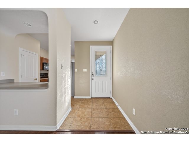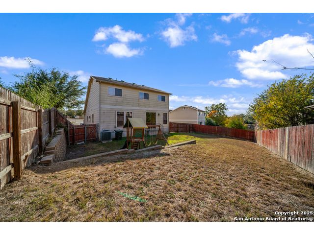 Gorgeous 4-bedroom, 3-full-bath home located in the desirable Links at Scenic Hills subdivision. Upon entry, you are welcomed into a spacious combined living and dining area that flows seamlessly into the kitchen, creating an ideal layout for everyday living and entertaining. The kitchen offers ample cabinetry, recessed lighting, black appliances, and a stainless-steel refrigerator. The primary suite is conveniently located downstairs just off the living area and features a full en-suite bathroom with dual vanities, a large garden tub, and a separate walk-in shower. Laminate wood flooring and ceramic tile have been installed throughout the home for easy maintenance and durability. Upstairs, you will find the remaining bedrooms along with a generously sized game room, providing flexible living space for work, play, or relaxation. Ideally situated with quick access to Interstate 35, Randolph Air Force Base, and premier shopping and dining at The Forum. The City of Schertz is currently developing a new 14-acre Hilltop Park adjacent to the subdivision, which will feature walking and mountain bike trails, an accessible loop trail around the pond, and a fishing pier. A wonderful opportunity in a growing area-this home is truly a pleasure to show.