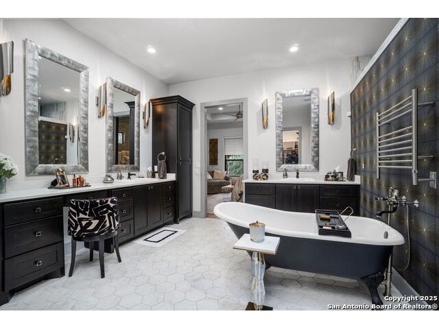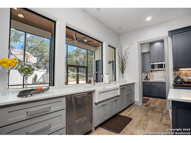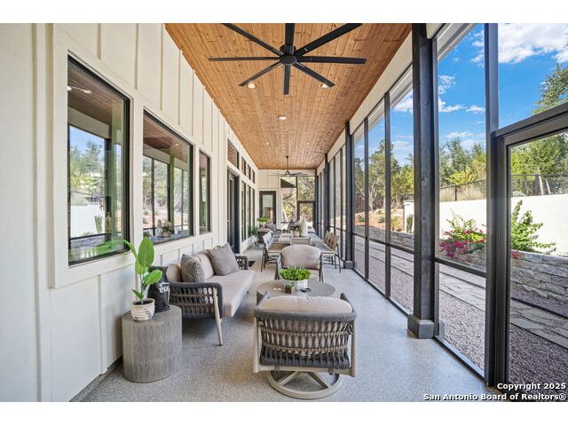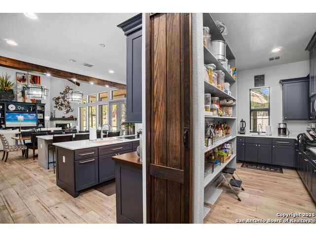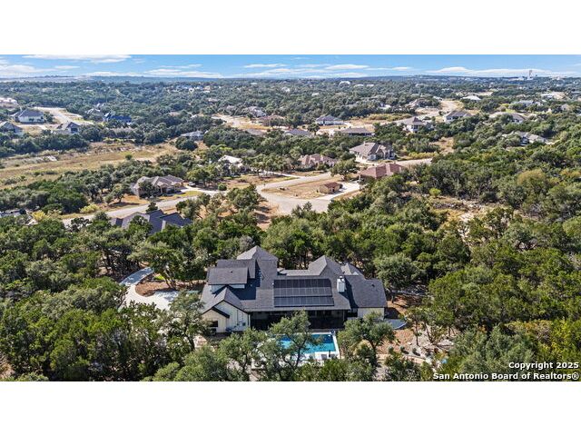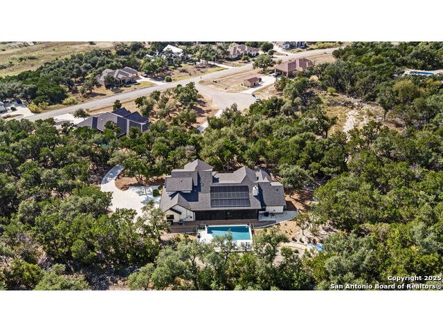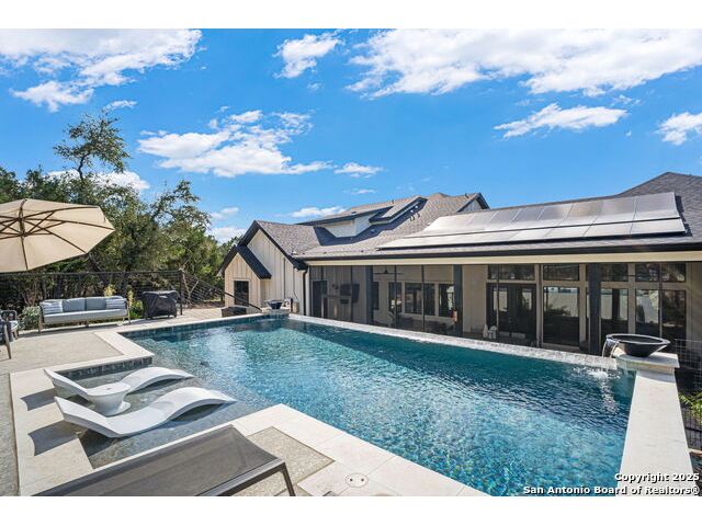 Every so often, a home captures the rare balance between sophistication, comfort, and the unmistakable charm of Hill Country living. 2016 Brunello is that home-a French-inspired masterpiece by T.A. French Custom Homes, completed in 2020 and privately set on 1.56 wooded acres in the prestigious Vintage Oaks at the Vineyard community. Offering approximately 3,679 square feet with 4 bedrooms and 3.5 baths, this residence blends timeless design with modern innovation. Since purchasing in 2023, the current owner has elevated every corner of the property with high-end upgrades, including a reimagined fireplace featuring new artisan tile, faux gas logs, and an electric starter; fresh designer wallpaper and updated entry tile; and a full suite of new designer light fixtures that create a consistent, elevated ambiance throughout. The heart of the home is the chef's kitchen, showcasing GE Cafe appliances, Benedettini cabinetry, quartz counters, a disappearing downdraft vent, and a catering-style pantry perfect for entertaining. The open living area flows effortlessly to a screened-in back patio-an expansive outdoor retreat with epoxy-coated flooring, ample space for dining or lounging, and tranquil views of the surrounding oaks. Beyond lies a newly added sparkling pool, custom fire pit, and professionally landscaped backyard framed by a substantial retaining wall and native greenery, offering both privacy and elegance. Inside, the spacious primary suite provides a serene escape with a spa-style bath featuring dual vanities, a soaking tub, and a large walk-through shower, while the additional bedrooms are generous in size and flexible in use. A serene reading room provides the perfect spot for reflection or creativity, and a walk-in attic offers abundant storage with easy access. The oversized, epoxied three-car garage is a dream for the enthusiast-complete with a garage sink, 220-volt plug, and a custom pull-down screen door over the smaller bay for year-round usability. Beyond beauty, this home is built for efficiency and peace of mind. Energy features include a 27-panel Tesla solar array with microinverters, a 14 kW Tesla backup battery, a dual high SEER heat pump with emergency heat, dual propane tankless water heaters, and full spray-foam insulation-all contributing to remarkable comfort and low utility costs. Vintage Oaks residents enjoy resort-style pools, a fitness center, clubhouse, tennis and sports courts, and miles of walking trails, making it the perfect combination of private living and community connection. Located within a highly rated school district and offering easy access to the best of New Braunfels-from shopping and dining to Canyon Lake and San Antonio-this home delivers the ideal Hill Country lifestyle. Elegant yet inviting, refined yet relaxed, 2016 Brunello is a turn-key sanctuary where craftsmanship meets convenience, every upgrade is intentional, and every day feels like a retreat.