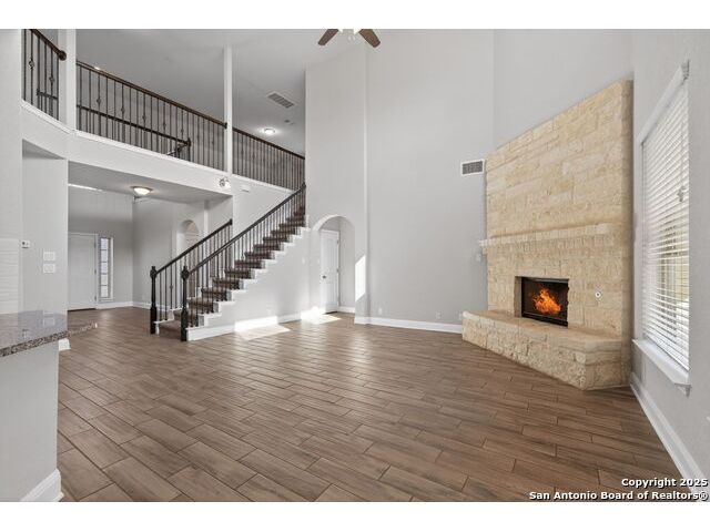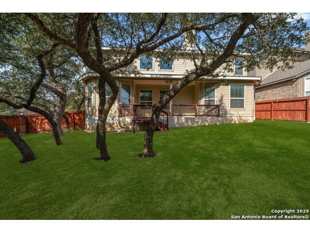 Move-in ready, freshly painted 4-bedroom, 3.5 bath home, with an open, light-filled floor plan. Features include a kitchen with built-in stainless steel appliances, granite countertops, new carpet throughout, and a beautiful stone fireplace. Situated on a desirable corner lot with a large backyard. Located in the gated Fallbrook community with amenities including a pool, clubhouse, and playground. Close to The Rim and La Cantera, and zoned to highly rated Boerne ISD.