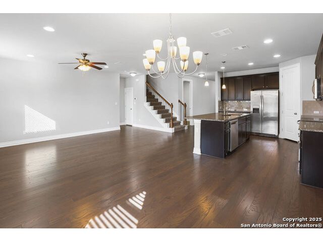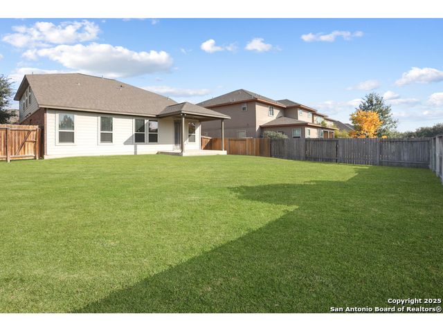 This impeccably maintained two-story home in Stevens Ranch offers an exceptional opportunity to enjoy upscale living in a premier, master-planned community-without the premium price. The bright, open floor plan features two spacious living areas and a beautiful island kitchen with granite countertops, 42" mahogany cabinets, stainless steel appliances, a walk-in pantry, and ample counter space-perfect for everyday living and entertaining. The private main-level primary suite provides a peaceful retreat with a garden tub, separate shower, dual vanities, and a large walk-in closet. Upstairs, you'll find a generous media/game room and three well-sized secondary bedrooms, each with walk-in closets. Notable extras include a water softener, full sprinkler system, and the refrigerator, washer, and dryer-all included. The roof was replaced in 2024, and the home feels fresh, clean, and truly move-in ready. Ideally located near highly rated schools, the home is within walking distance to the resort-style community pool and recreation center, with H-E-B conveniently located at the neighborhood entrance and quick access to Hwy 211. With its excellent condition, prime location, and recent price improvement, this home is ready for its next owners to fall in love.