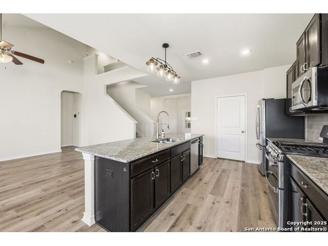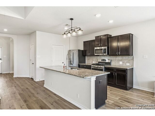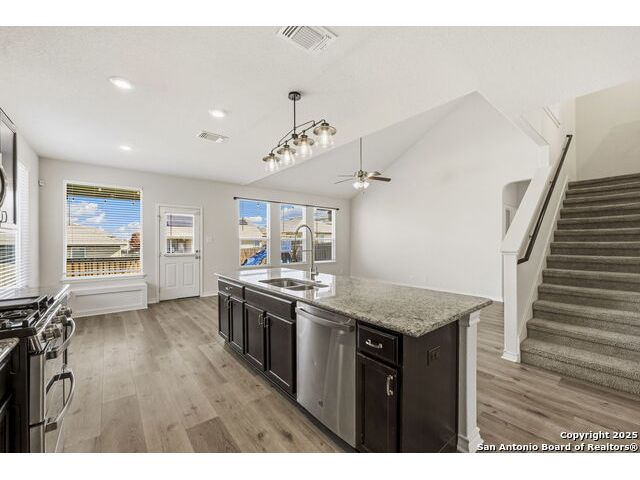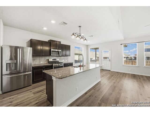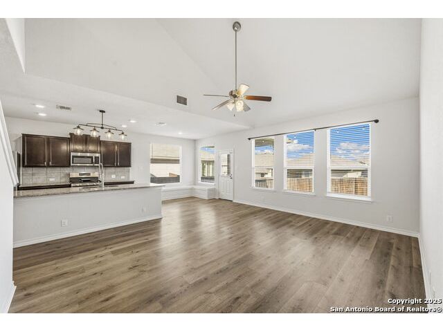 Beautiful, energy-efficient 4-bedroom home featuring 5.4 kW solar panels, a 24-amp 240V EV charger, and solar sun screens on the front of the home for enhanced efficiency and comfort. This must-see property offers upgrades throughout, including luxury vinyl plank flooring installed on 10/30/2025. Enjoy relaxing evenings on the covered back patio, perfectly positioned to minimize the sun's intensity while providing a comfortable outdoor retreat. The kitchen has it all, featuring stainless steel appliances, granite countertops, and a spacious walk-in pantry. Enjoy cooking on the 5-burner gas range while effortlessly entertaining guests. The large game room/loft provides the perfect space for cozy evenings at home, ideal for watching your favorite movies or hosting family and friends.