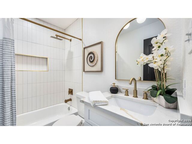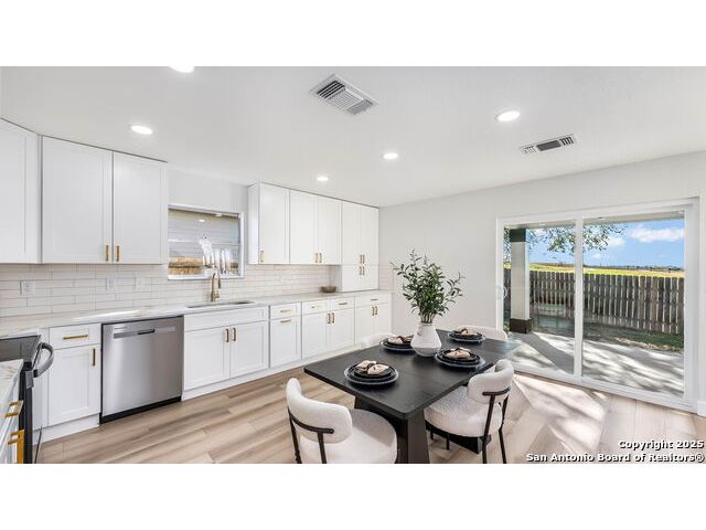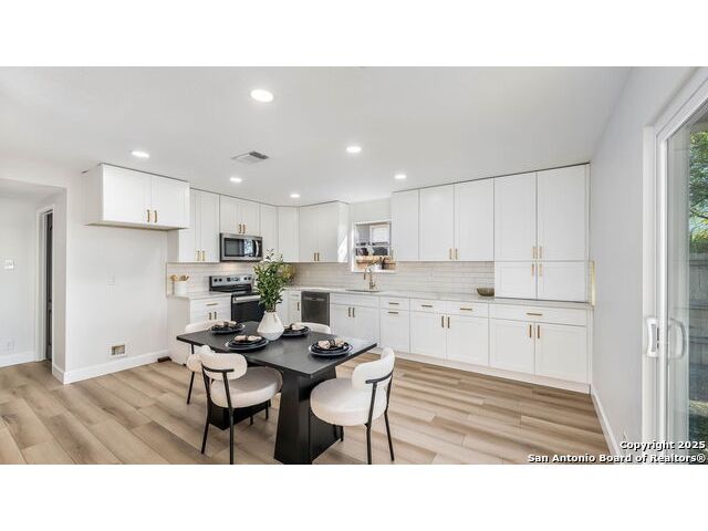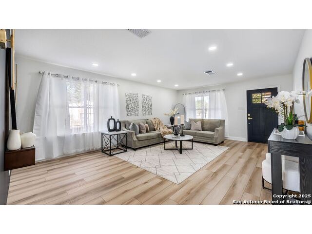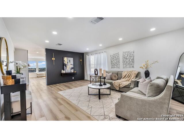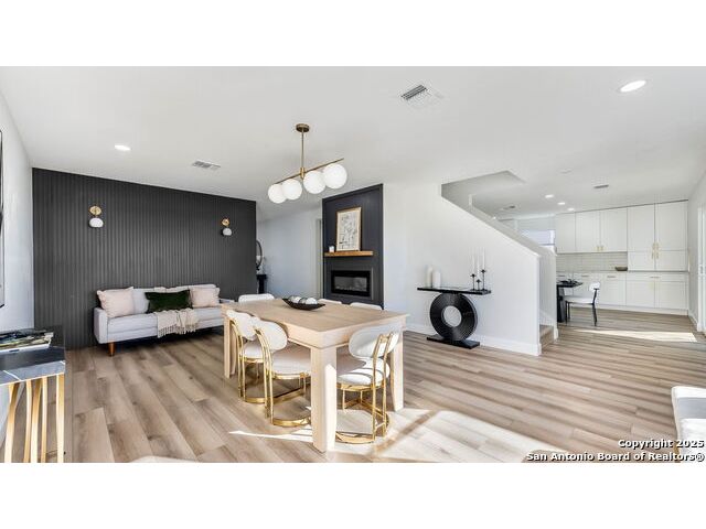 Welcome to 606 San Augustine. A beautifully updated 4-bedroom, 2.5-bath, two-story home offering 2,658 sq ft of stylish living on a desirable corner lot. Step inside to an open, light-filled layout highlighted by wide-plank flooring, recessed lighting, and modern design touches throughout. The spacious living and dining areas flow seamlessly, anchored by a striking custom accent wall and contemporary fireplace, perfect for both everyday living and entertaining. The kitchen is thoughtfully designed with crisp white cabinetry, sleek hardware, and ample storage. The large loft upstairs provide flexibility for work-from-home, play, or relaxation. The primary suite is a true retreat, featuring a spa-inspired bathroom with a freestanding soaking tub, designer tile, a walk-in shower with luxe gold fixtures, and elegant finishes that feel straight out of a magazine. Additional bedrooms are generously sized, offering comfort and versatility for family or guests. Outside, the corner lot provides added privacy and curb appeal, with room to enjoy outdoor living. Located in a growing New Braunfels community with convenient access to shopping, dining, and major roadways. Don't miss the opportunity to own this move-in-ready stunner! Schedule your private tour today!