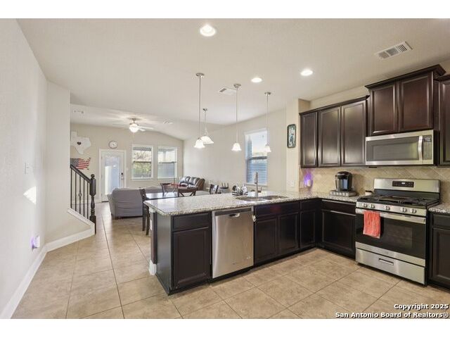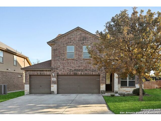 This beautiful two-story home in Estonia is a rare find, offering an unbeatable combination of style and functionality. As part of a military relocation, this meritage home boasts an open floor plan with soaring ceilings, a formal dining area, and a spacious master suite located downstairs. The master bath features a luxurious tub and shower, a separate double vanity, and an enormous walk-in closet. The upstairs level offers three large bedrooms, a theater room, and a game room, providing ample space for family activities and entertaining. Additional features include a three-car garage, an extended backyard patio with green belt views, a new roof, solar energy panels, foam insulation for energy savings, a new water heater, Energy Star appliances, gas cooking, and more. Don't miss this incredible opportunity to own a home with space, comfort, and so many upgrades.